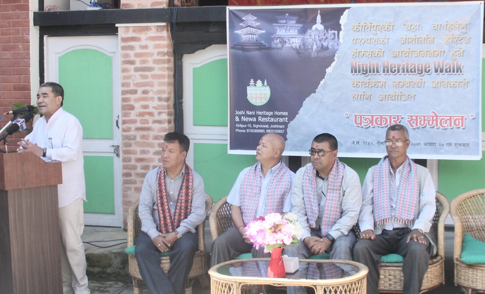 किपूलिइ ऐतिहासिक व साँस्कृतिक सम्पदायात जगेर्ना नाप पर्यटन प्रबद्र्धनया उद्देश्य ज्वनाः वइगु श्रावण २७ गते शुक्रबाः बहनी सम्पदा यात्रा जुइत्यंगु दु । जोशीननी हेरिटेज होम्सय् थौं छगू पत्रकार सम्मेलन याना परम्परागत रूपं सापारु कुन्हु हना वयाच्वंगु ‘बहाः चाहिलेगु’ परम्परालिसे पर्यटन प्रवद्र्धन स्वायेगु धका जानकारी बिउगु खः ।