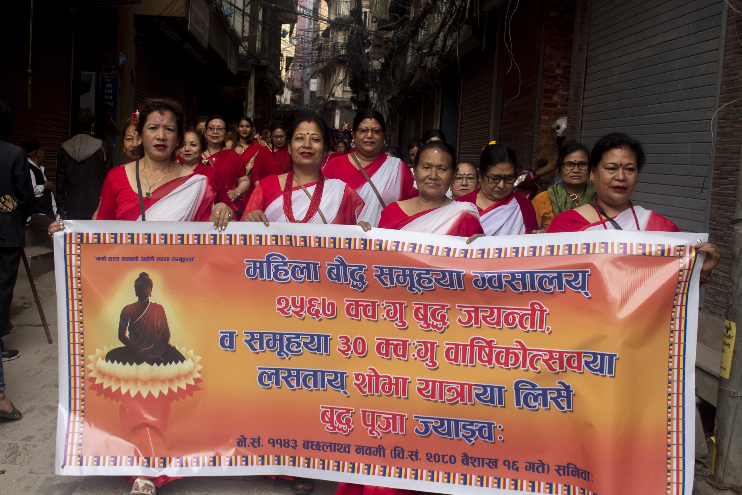२५६७ क्वःगु बुद्ध जयन्तीया लसताय् महिला बौद्ध समूहया ग्वसालय् थौं येँया ओन्दे त्वालय् बुद्ध पूजालिसें शोभा यात्रा न्ह्याकूगु दु ।