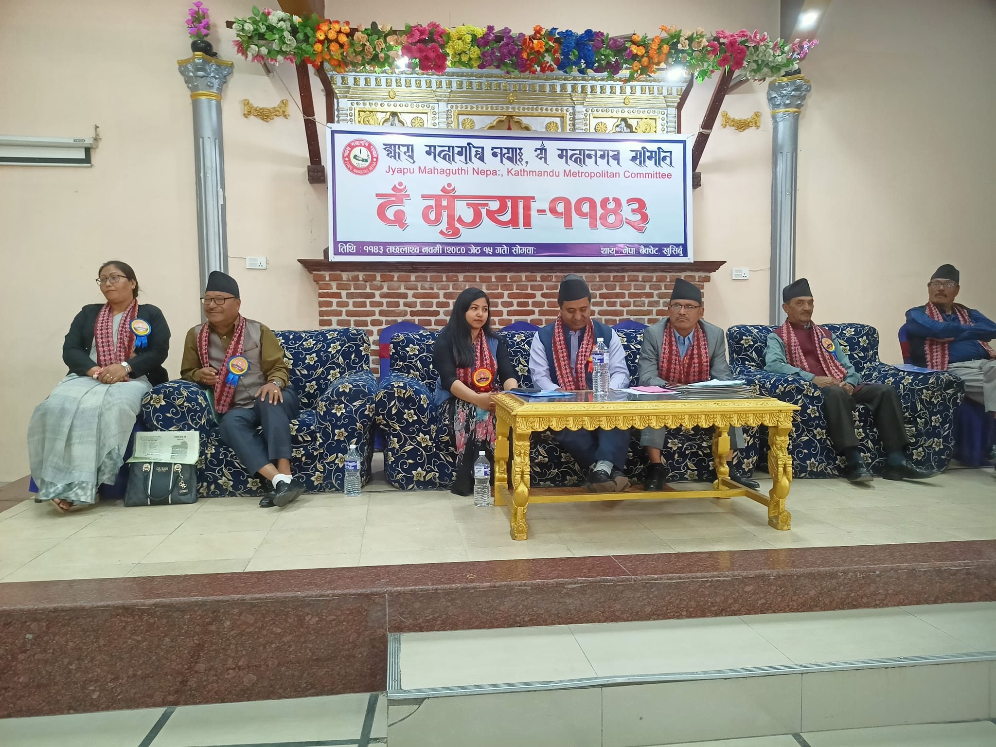 ज्यापु महागुथि येँ महानगर समितिया ग्वसालय् छगु ज्याझ्वः दथुइ जेठ १५ गते साेमवारया दिनसं नेपाः बैक्वटेय् दँमुज्या क्वचाल । ६३ त्वाःया नायः गुरु कजि दुथ्यागु उगु दँमुज्याय् थिथि कवःया कार्यप्रगति विवरण पितव्यूगु खः । नापं थुगु ज्याझ्वलय् थिथि कासाय् गोल मेण्डेल त्याकापिं खेलाडिपिन्त सम्मान यागु खः ।