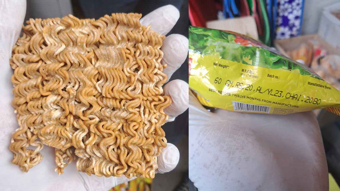 महानगरपालिकाया वडा नं. ६, सरस्वती नगरया किराना पसलं वैशाख २ गते चाउचाउ जफत याःगु खः । २०८० चैतय् उत्पादन याःगु ६० ग्रामया २० तका मू तयातःगु व्याच नं. AL/YL23 या चाउचाउ जफत याये धुंकाः१५० ग्राम नमूना चाउचाउ परीक्षण यायेत प्रयोगशाला छ्वःगु खः । थुकथं छ्वःगु नमूनाय् कम्पनी व उत्पादनया विवरण गोप्य तयातःगु खः । ७ गते प्रयोगशालाय् ब्यूगु नमूना रिपोर्ट ११ गते पिहाँ वःगु खः ।