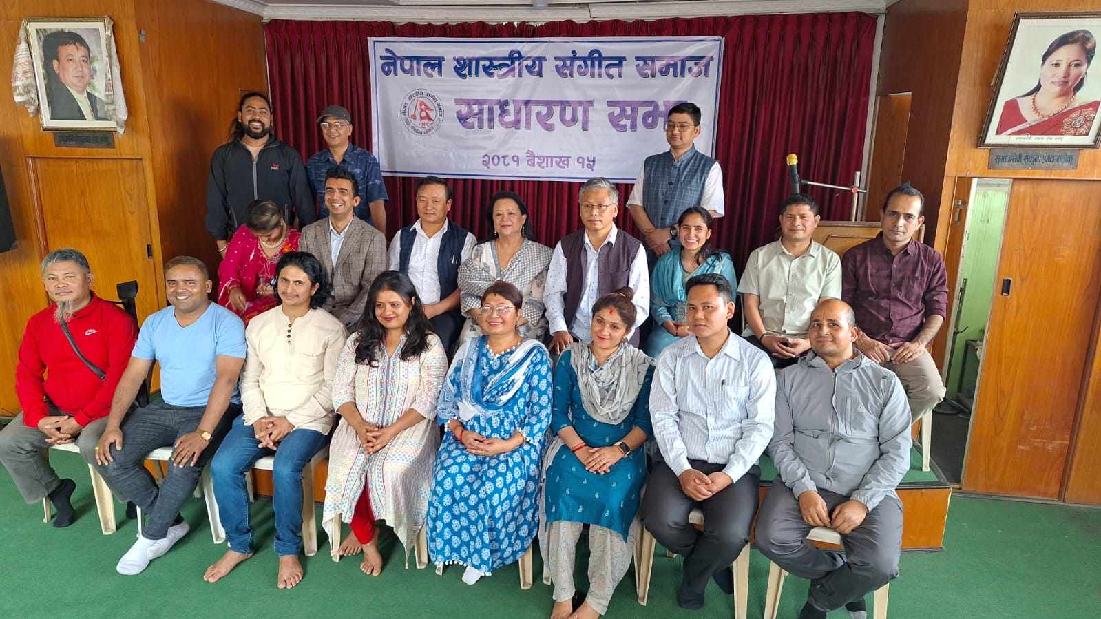 शास्त्रिय संगितकारपिन्त संरक्षणया लागि स्थापना जुगु नेपाल शास्त्रिय संगित समाजं छगु वैठक च्वनां पूर्व कार्यसमितियात सुभाय् विइगु जुगु दु । स्थापना काल निसें हे थुगु संस्थां शास्त्रिय संगितयात संरक्षण यानाः वयाच्वंगु दु । अथेहे संगितकारपिन्त छगु हे थासय् हय्गु प्रयास यानाच्वंगु दु । थ्वहे वैशाख १५ गते च्वंगु साधारण सभां संगीता प्रधानया अध्यक्षताय् न्हुगु ज्यासना पुचः ल्यगु दु । उगु ज्यासना पुचलय् श्रीवत आले उपाध्यक्ष, गोकुल लिम्बु महासचिव, परशुराम पौड्याल कोषाध्यक्ष, तिर्थराज पोखरेल सहसचिव , जेनिसा पौड्याल सह कोषाध्यक्ष, अथेहे सदस्यपिं कृष खरेल, श्री ले.सी, हेमरत्न पून, पार्वती घिमिरे, यतिराज अधिकारी, थानेश्वर गौतम, सुजाता वराल, नरेश प्रजापति, विष्णु व. विश्वकर्मा,विजय कुमार दलार्मि, कुन्दन पाण्डे, ईश्वर मघैया, प्रभा वर्तोला व गंगादेवी महर्जन दु । थ्वहे न्ह्यःया कार्यकालय् वरिष्ठ संगितज्ञ धन बहादुर गोपालिया नेतृत्व थुगु समाज दुगु खः । २०५५ सालय् थ्व समाज निस्वंगु खः ।