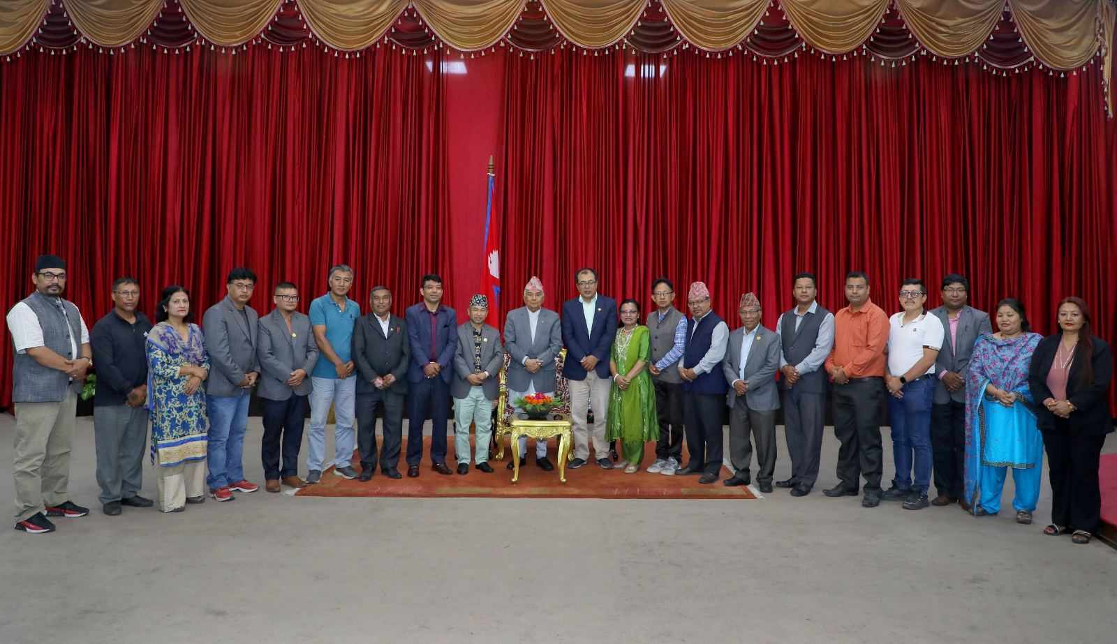 दबूया नायः नृपेन्द्रलाल श्रेष्ठया नेतृत्वय् राष्ट्रपति कार्यालय शितल निवासय् नाप लायेगु झ्वलय् राष्ट्रपति पौडेलं नेपाल बहुजातीय, बहुभाषिक, बहुसांस्कृतिक देय् जूगु खँ संविधानय् हे च्वया तये धुंकूगु व थुकियात लागु याकेगु सरकारया हे जिम्मेवारी जूगु खँ कनादिल ।