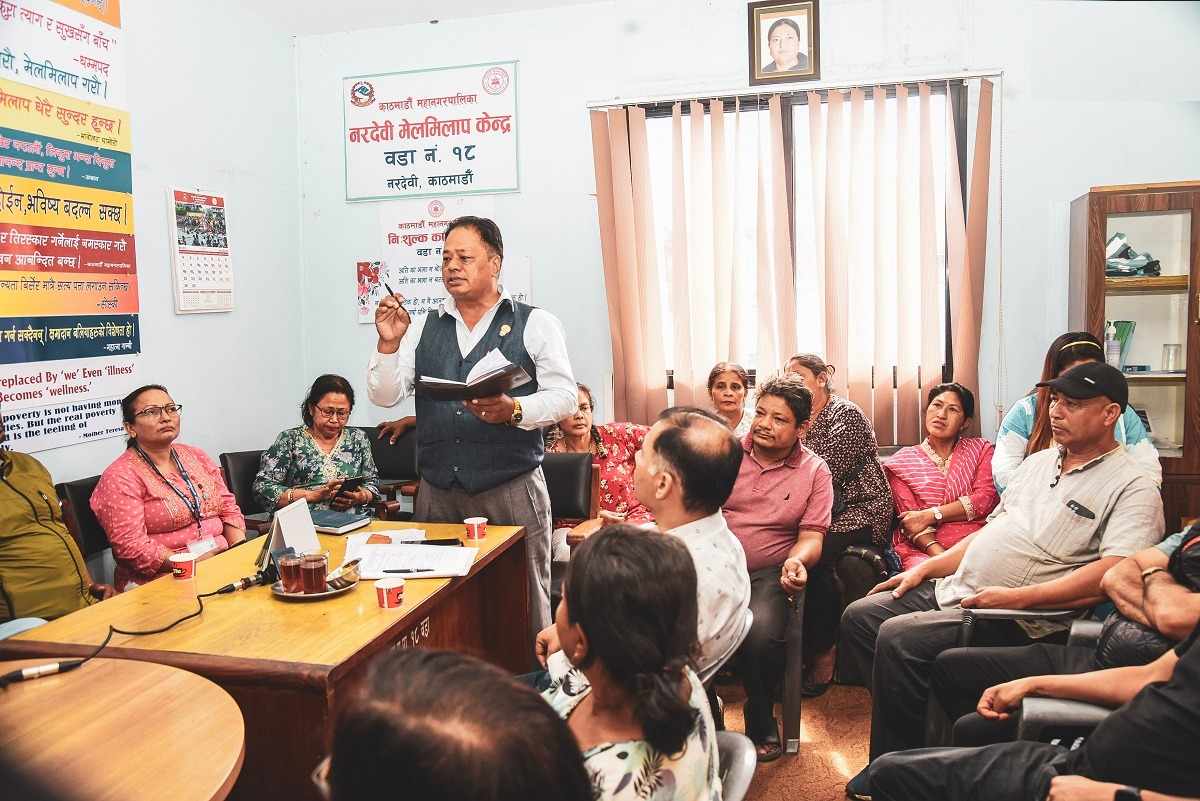 वडाया भूगोल, वडादुने सञ्चालन जुइगु सामाजिक व सांस्कृतिक ज्याझ्वः, काुसा, समानता, समावेशीकरण, आर्थिक विकास, सेवा प्रवाह व सुविधा इनेज्यायात सन्तुलित विकासकथं वइगु दँया योजनाय् दुथ्याकेगु १८ वडाया नायः न्हुच्छेकाजी महर्जनं धयादीगु दु । वडा ज्याकुथिइ जूगु चालु आर्थिक दँया सार्वजनिक सुनुवाई व वइगु आर्थिक दँया योजना तर्जुमा सहलह ज्याझ्वलय् वय्कलं वइगु दँया योजनाया विषयस जानकारी बियादीगु दु ।