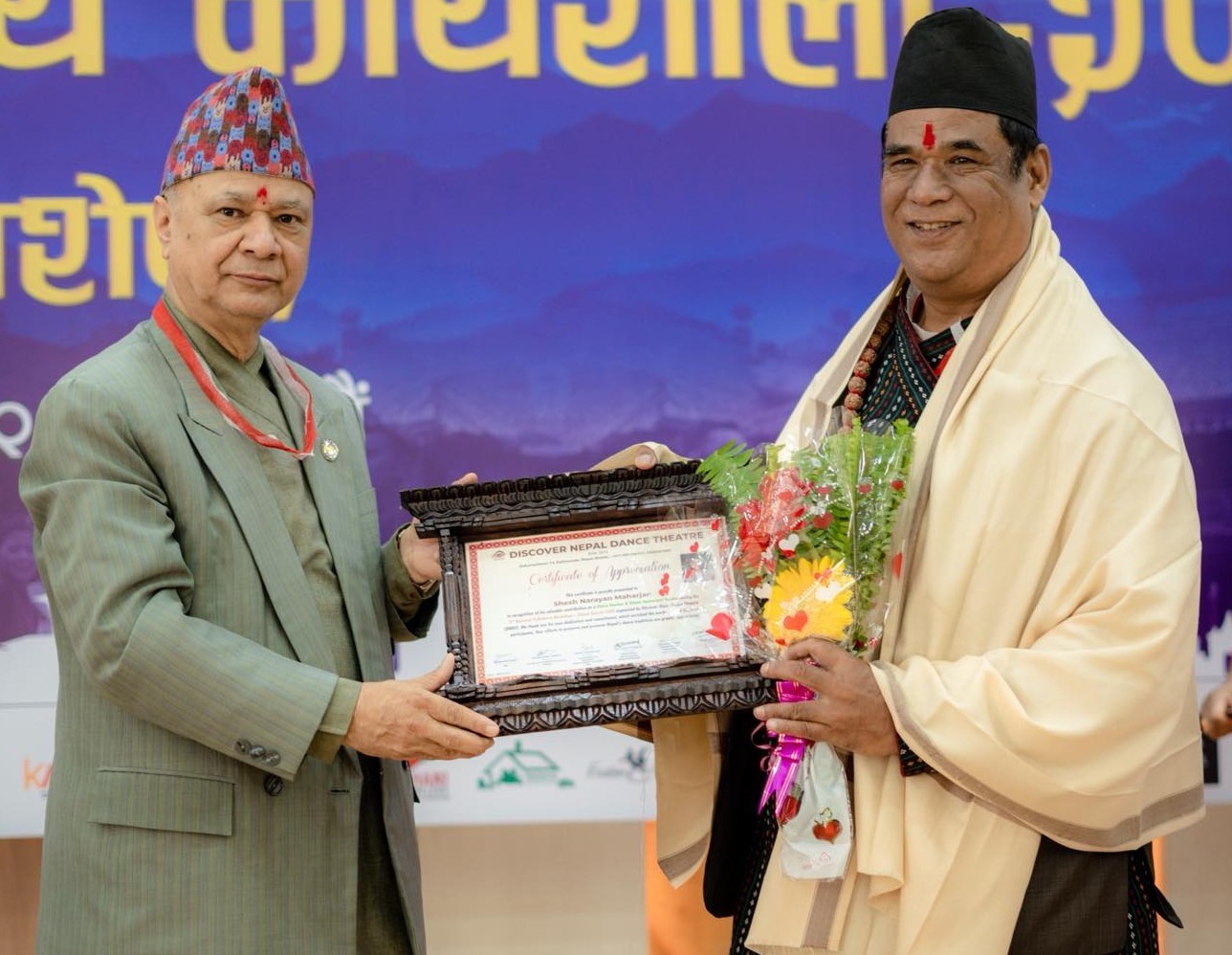 डिएनडिटिं निक्वःगु राष्ट्रिय लोकनृत्य कार्यशाला(२०८२ धिमे विशेष या अवसरय् ग्वसाग्वयाः वय्कपिन्त सम्मान यागु खः ।