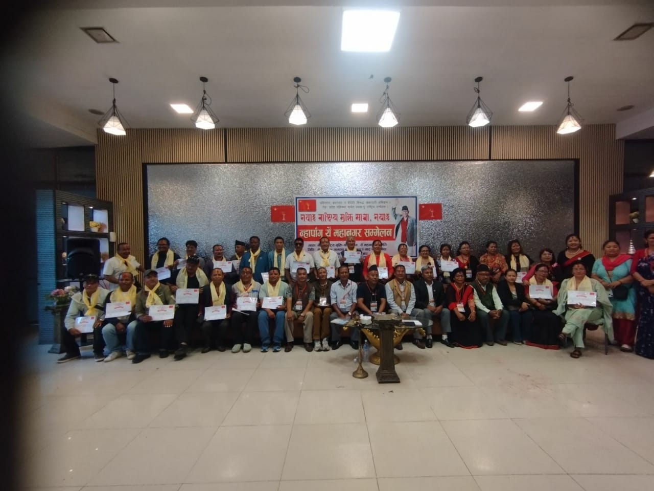 अथे हे माओवादी केन्द्रया जिल्ला इन्चार्ज हिमाल शर्मां पार्टी नेवाःतय्गु हकहित व अधिकारया नितिं प्रतिबद्ध दु धयादिसें पार्टीया नेवाः–तामाङ जागरण अभियान निरन्तर जारी दुगु खँ कनादिल । सम्मेलनय् नेवाः मोर्चाया महासचिब रविन्द्र महर्जन, माओवादी केन्द्रया केन्द्रीय दुजःपिं रविन्द्र श्रेष्ठ, नागेन्द्र खड्का, केन्द्रीय सल्लाहकार धनलाल महर्जन, माओवादी केन्द्र येँ जिल्ला नायो सञ्जय लामा व छ्याञ्जे महेश्वर फुँयाल लिसें महानगर समिति संयोजक निरज लामा झायादीगु खः ।