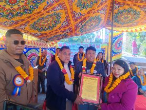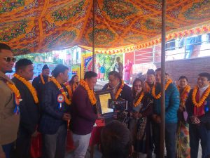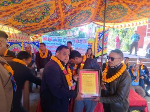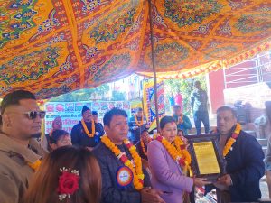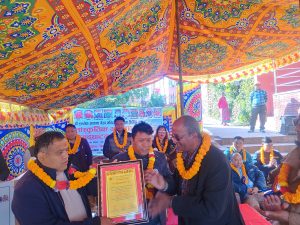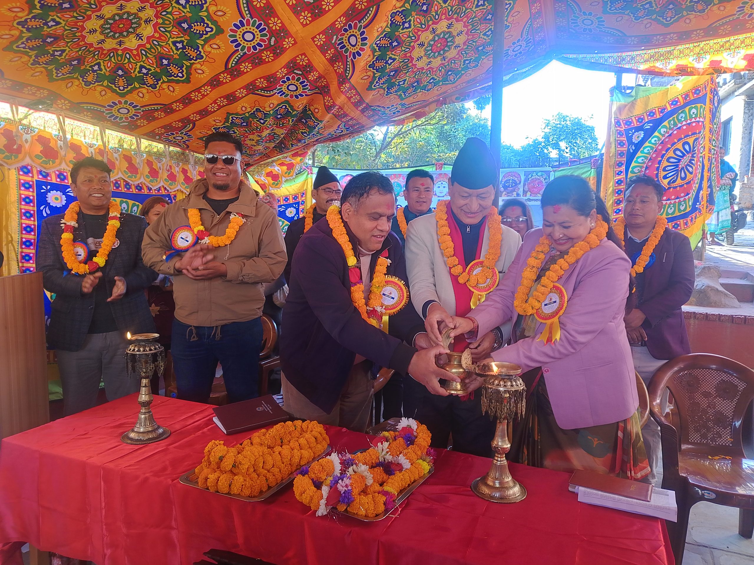 थुकथं हे सांस्कृतिक भवन निर्माण ज्या यानादीम्ह सुधीर चन्द्र झायालिसें हल्चोक आकाश भैरव गुठीया थीथी ज्याझ्वःत न्ह्याकेगु निंतिं ग्वाहालि यानावयाच्वनादीम्ह पवन स्थापित व सुर संसार मिडियाया नायःलिसें न्हाय्कं डटकमया प्रधान सम्पादक सुनिता महर्जनयात नं हनेज्या याःगु खः ।
